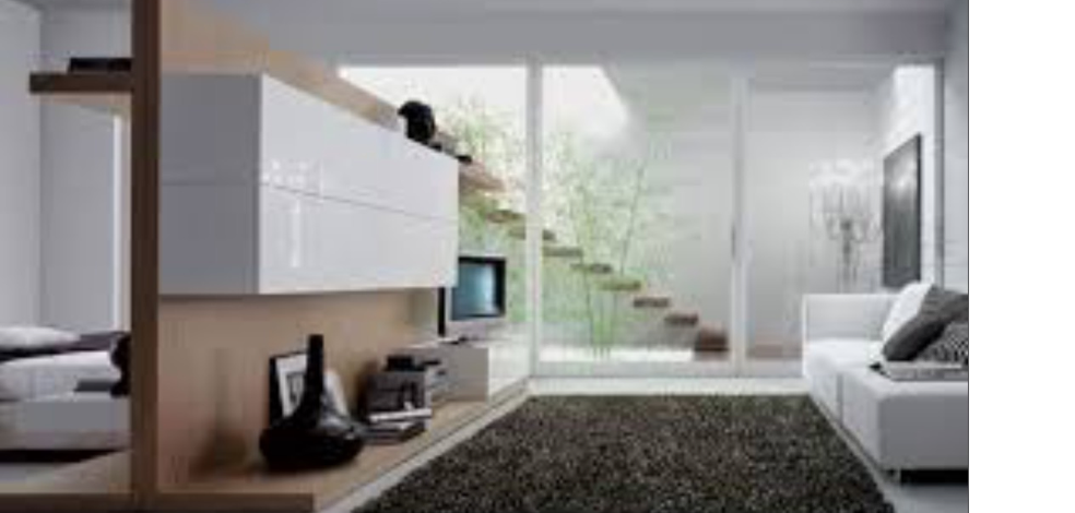 Los escaleras es detras de la television. Hay el televisor, la alfombra, y el cuadro en la sala. Yo miro las television y arreglar el cuarto.