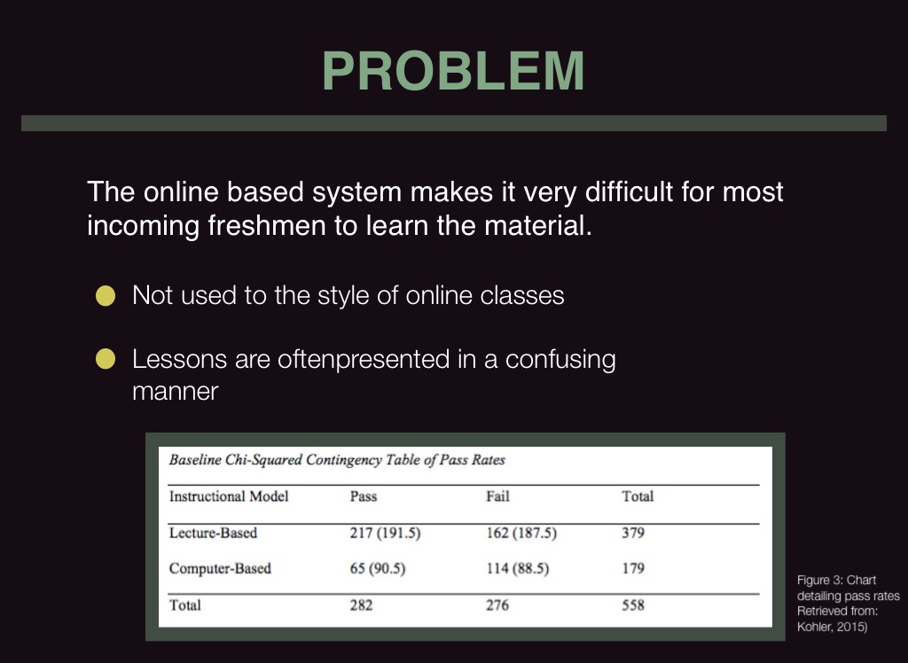 The online based system makes it very difficult for most incoming freshmen to learn the material.