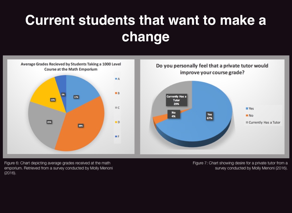 Figure 6: Chart depicting average grades received at the math emporium. Retrieved from a survey conducted by Molly Menoni (2016).