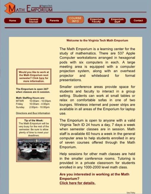 Figure 2: Math Emporium Course Info Retrieved from http://www.emporium.vt.edu/