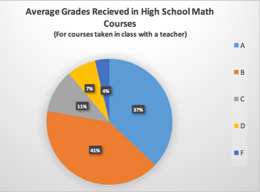 Figure 4: Chart depicting average high school grades in math. Retrieved from a survey conducted by Molly Menoni (2016).