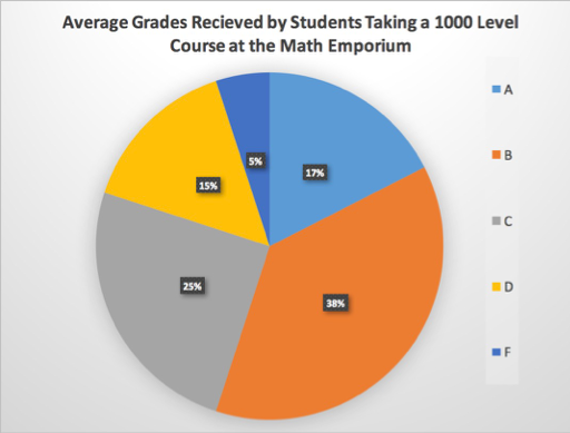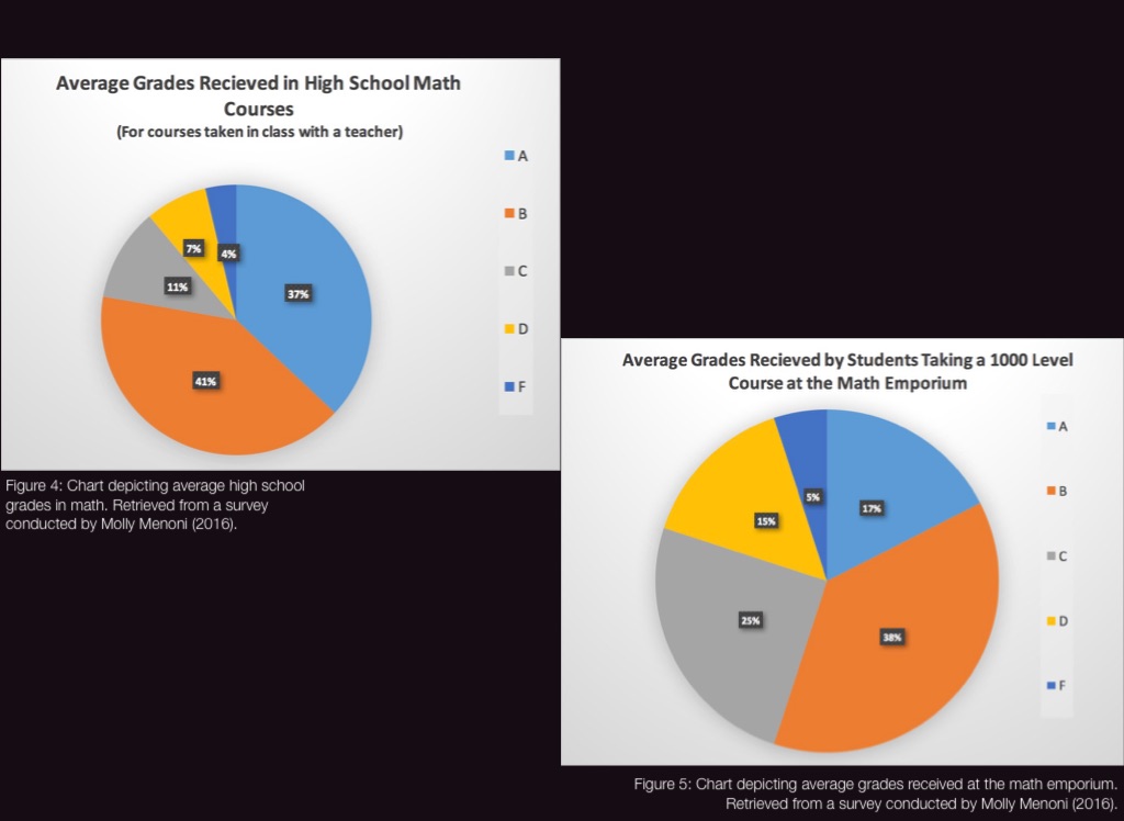 Figure 5: Chart depicting average grades received at the math emporium. Retrieved from a survey conducted by Molly Menoni (2016).