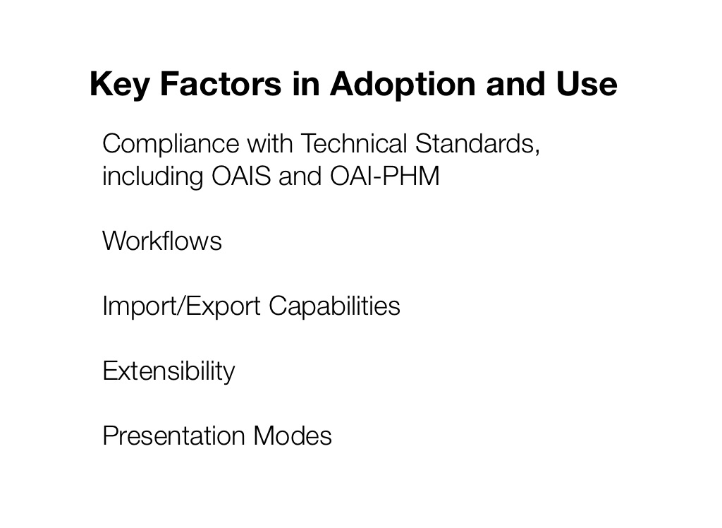 Compliance with Technical Standards, including OAIS and OAI-PHM
