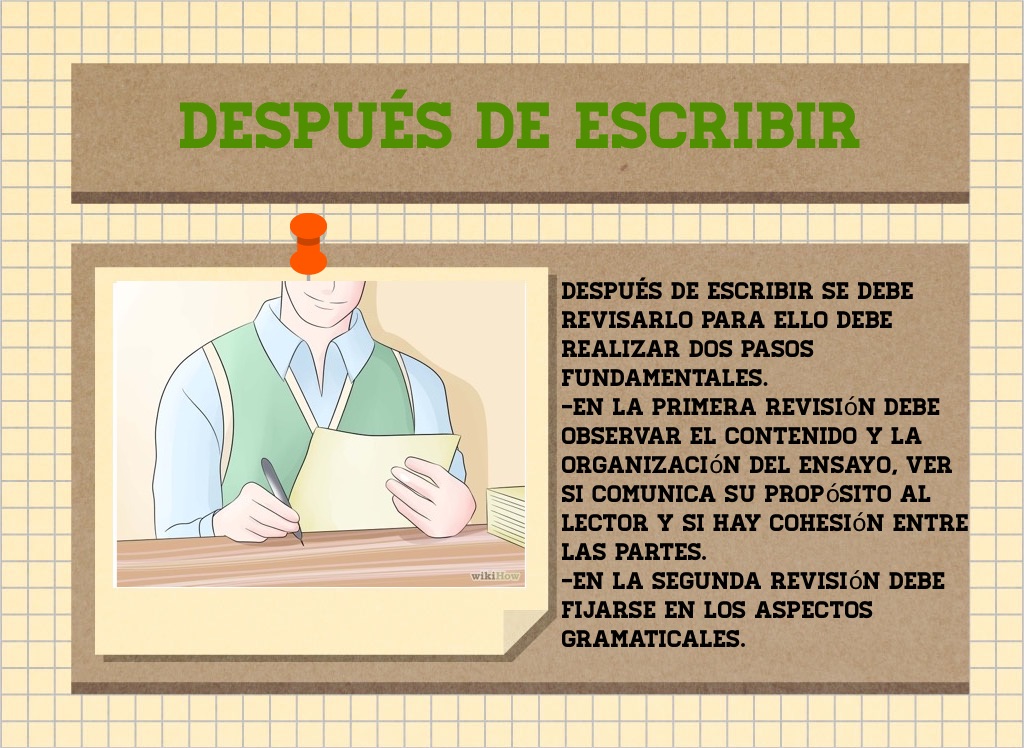 -En la primera revisión debe observar el contenido y la organización del ensayo, ver si comunica su propósito al lector y si hay cohesión entre las partes.