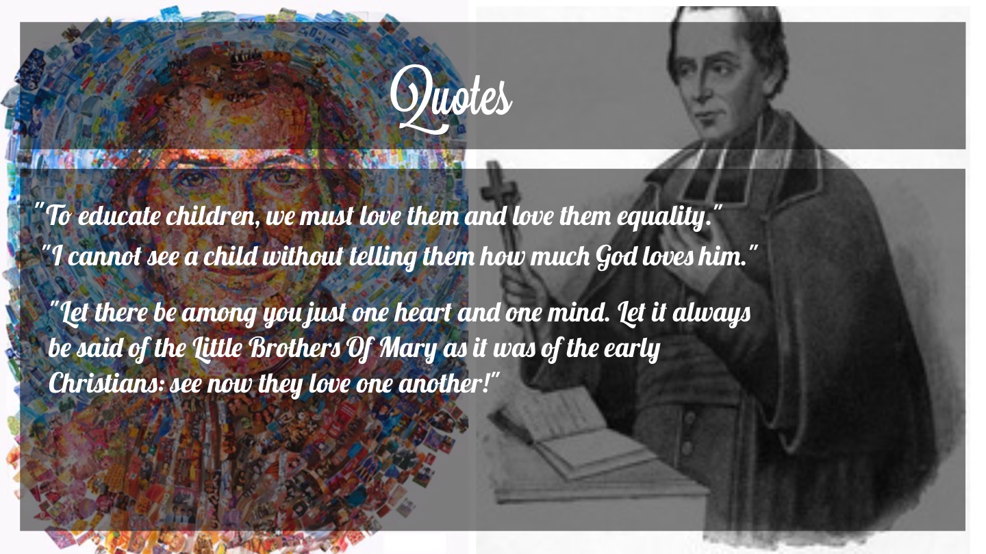 "Let there be among you just one heart and one mind. Let it always be said of the Little Brothers Of Mary as it was of the early Christians: see now they love one another!"