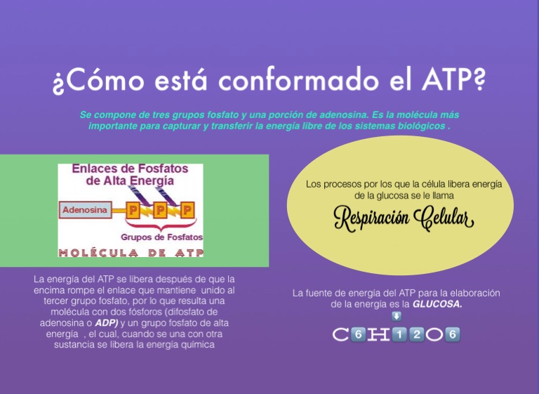 Se compone de tres grupos fosfato y una porción de adenosina. Es la molécula más importante para capturar y transferir la energía libre de los sistemas biológicos .