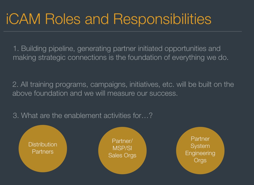 1. Building pipeline, generating partner initiated opportunities and making strategic connections is the foundation of everything we do.