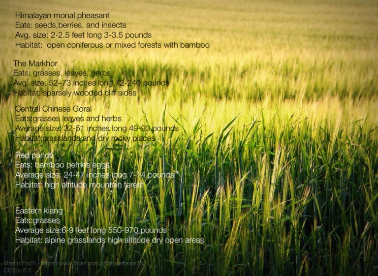 Habitat: open coniferous or mixed forests with bamboo