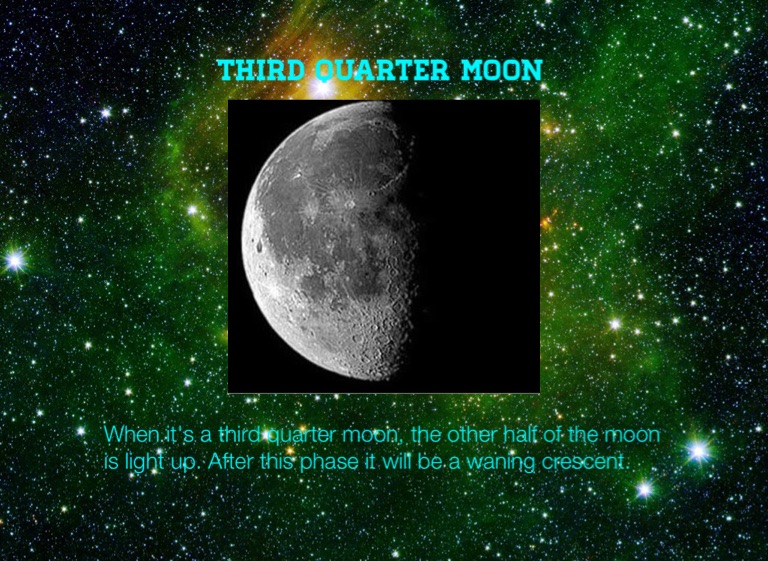 When it's a third quarter moon, the other half of the moon is light up. After this phase it will be a waning crescent.