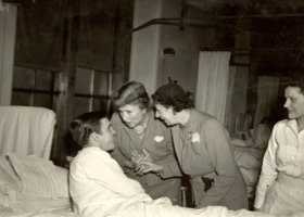 Helen Keller and Annie Sullivan in the hospital visiting a wounded veteran
