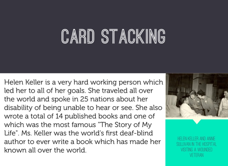Helen Keller is a very hard working person which led her to all of her goals. She traveled all over the world and spoke in 25 nations about her disability of being unable to hear or see. She also wrote a total of 14 published books and one of which was the most famous "The Story of My Life". Ms. Keller was the world's first deaf-blind author to ever write a book which has made her known all over the world.