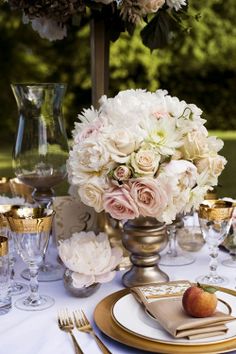 Soft shades of taupes and neutrals will compliment each other. While accents of natural green foliage will accent the neutrals. Metallics like silver and mercury glass will work well with wood providing a textural contrast to the soft florals. This color concept is designed to accentuate the venue.