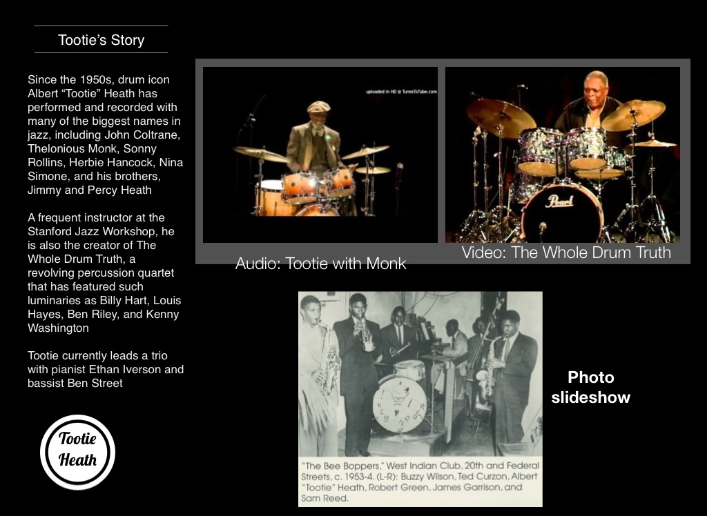 Tootie currently leads a trio with pianist Ethan Iverson and bassist Ben Street