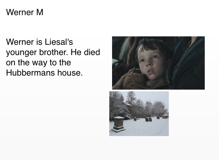 Werner is Liesal's younger brother. He died on the way to the Hubbermans house.