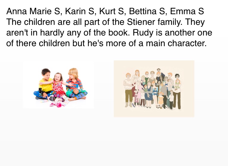 The children are all part of the Stiener family. They aren't in hardly any of the book. Rudy is another one of there children but he's more of a main character.