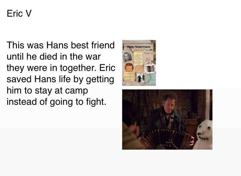 This was Hans best friend until he died in the war they were in together. Eric saved Hans life by getting him to stay at camp instead of going to fight.