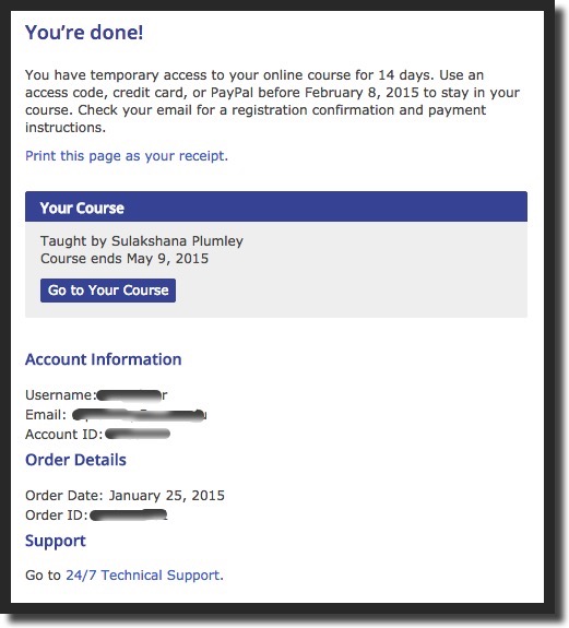 Please note your screen will look similar. The course obviously ends July 31, 2015.