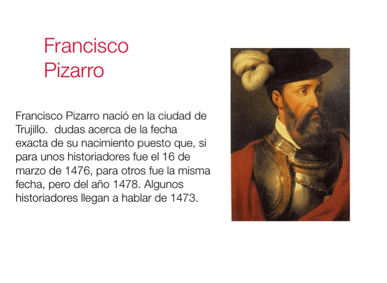 Francisco Pizarro nació en la ciudad de Trujillo. dudas acerca de la fecha exacta de su nacimiento puesto que, si para unos historiadores fue el 16 de marzo de 1476, para otros fue la misma fecha, pero del año 1478. Algunos historiadores llegan a hablar de 1473.