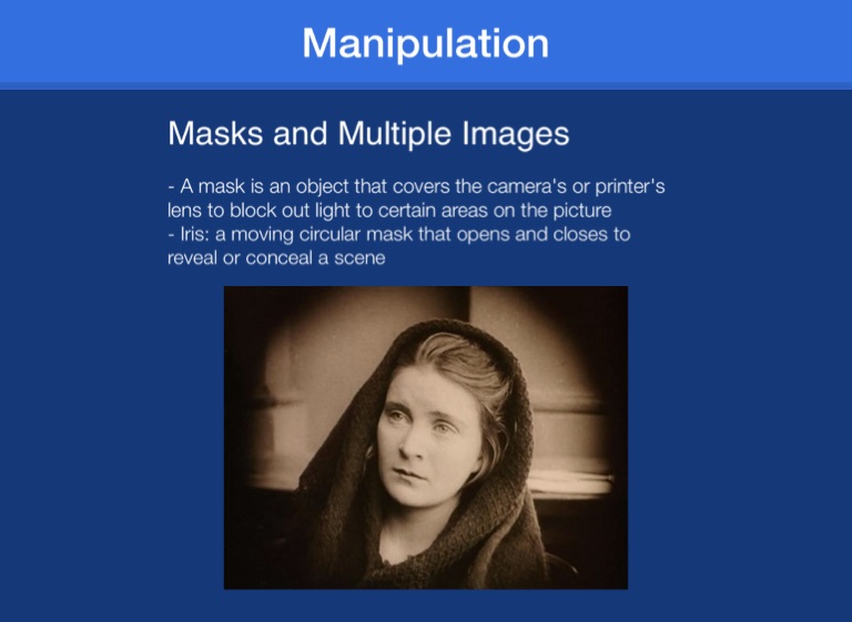 - Iris: a moving circular mask that opens and closes to reveal or conceal a scene