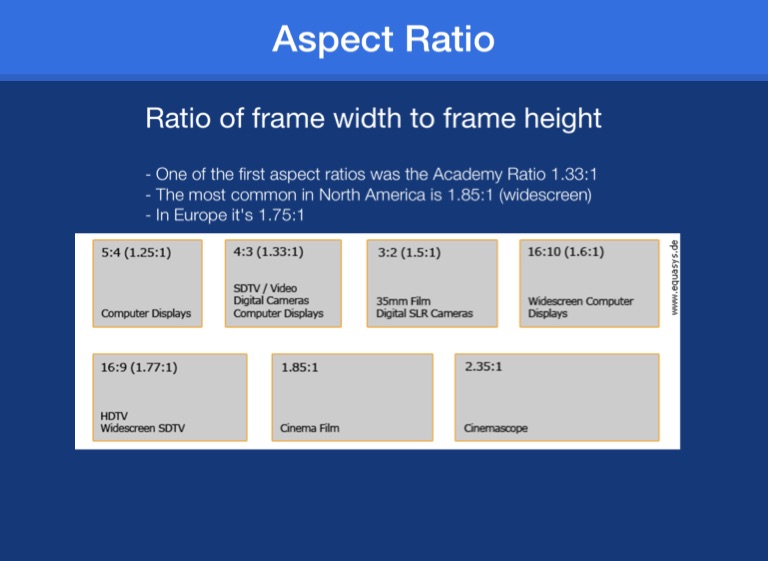 - One of the first aspect ratios was the Academy Ratio 1.33:1
