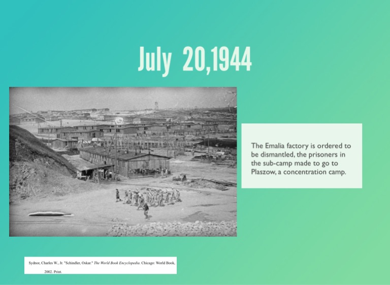 The Emalia factory is ordered to be dismantled, the prisoners in the sub-camp made to go to Plaszow, a concentration camp.