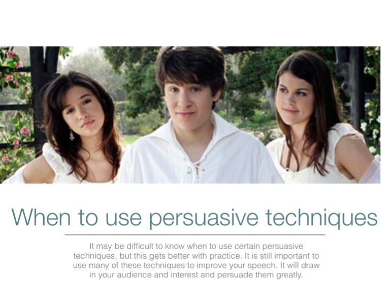 It may be difficult to know when to use certain persuasive techniques, but this gets better with practice. It is still important to use many of these techniques to improve your speech. It will draw in your audience and interest and persuade them greatly.