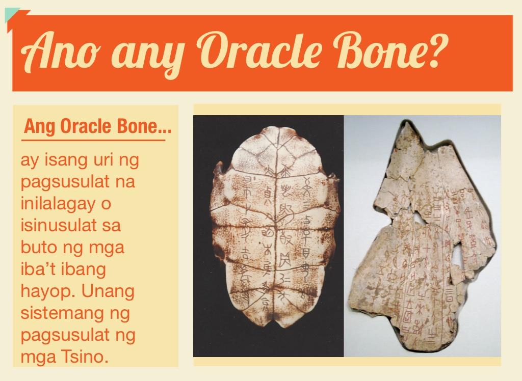 ay isang uri ng pagsusulat na inilalagay o isinusulat sa buto ng mga iba’t ibang hayop. Unang sistemang ng pagsusulat ng mga Tsino.