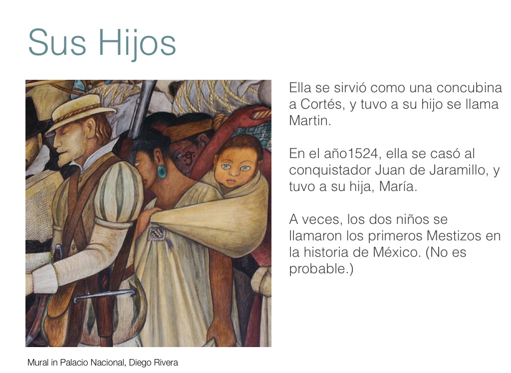 Ella se sirvió como una concubina a Cortés, y tuvo a su hijo se llama Martin.