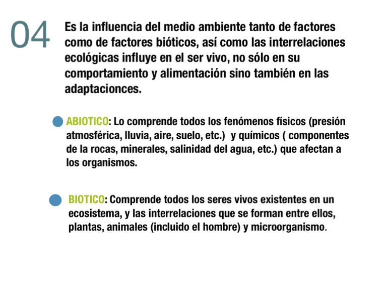 Es la influencia del medio ambiente tanto de factores como de factores bióticos, así como las interrelaciones ecológicas influye en el ser vivo, no sólo en su comportamiento y alimentación sino también en las adaptacionces.
