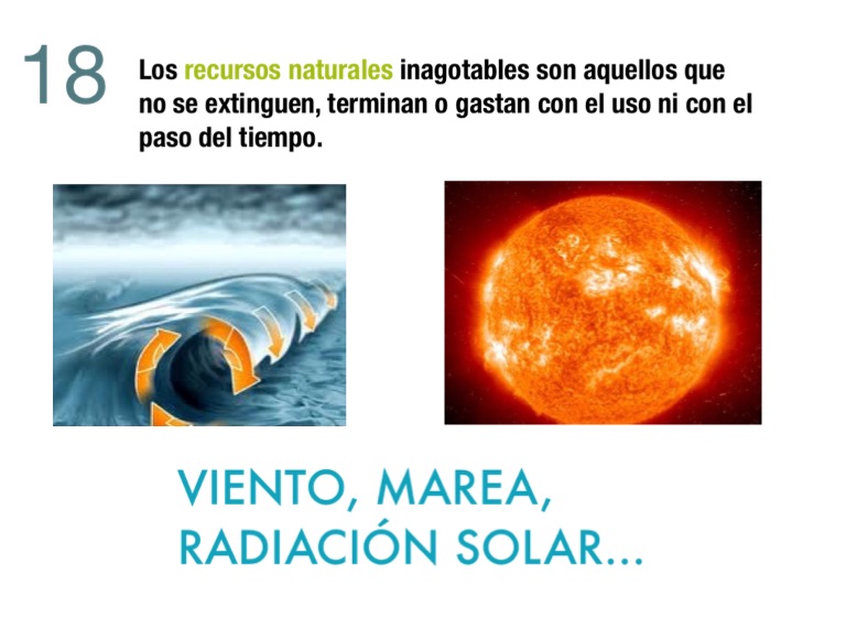 Los recursos naturales inagotables son aquellos que no se extinguen, terminan o gastan con el uso ni con el paso del tiempo.