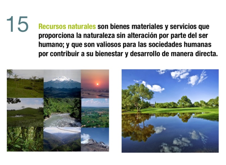 Recursos naturales son bienes materiales y servicios que proporciona la naturaleza sin alteración por parte del ser humano; y que son valiosos para las sociedades humanas por contribuir a su bienestar y desarrollo de manera directa.
