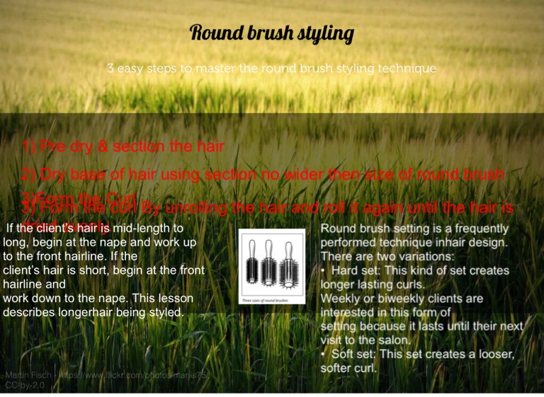 Round brush setting is a frequently performed technique inhair design. There are two variations: