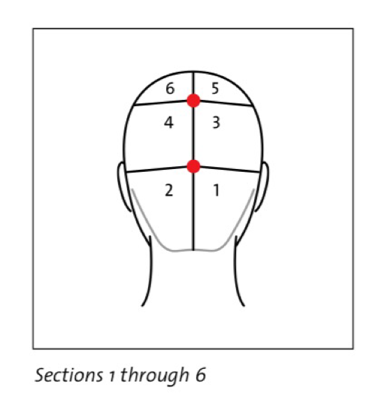 2. Part the hair from the center front hairline to the center back hairline. This is called the center part.