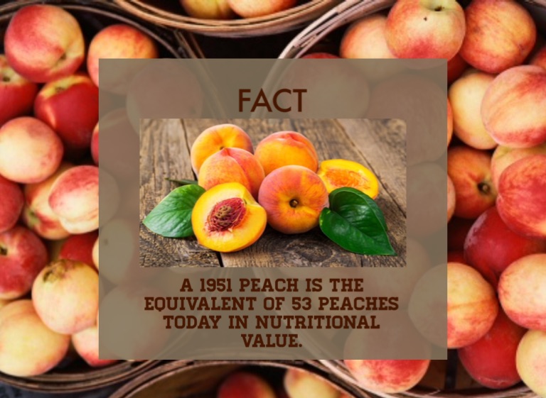 A 1951 peach is the equivalent of 53 peaches today in nutritional value.