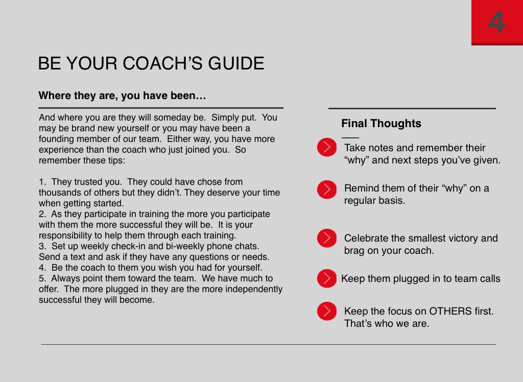 And where you are they will someday be. Simply put. You may be brand new yourself or you may have been a founding member of our team. Either way, you have more experience than the coach who just joined you. So remember these tips: