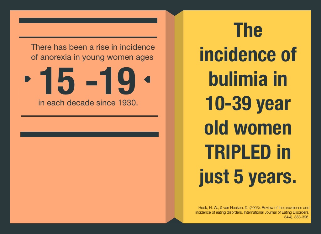 The incidence of bulimia in 10-39 year old women TRIPLED in just 5 years.