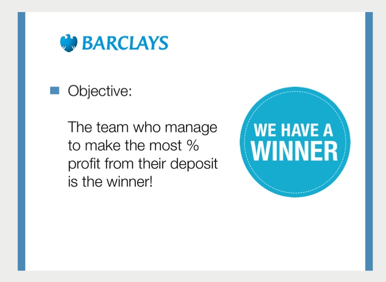 The team who manage to make the most % profit from their deposit is the winner!