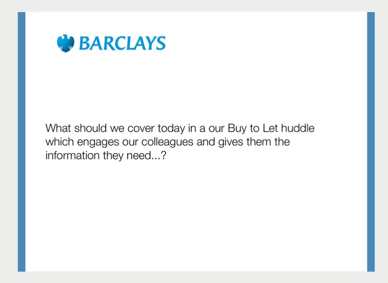 What should we cover today in a our Buy to Let huddle which engages our colleagues and gives them the information they need...?