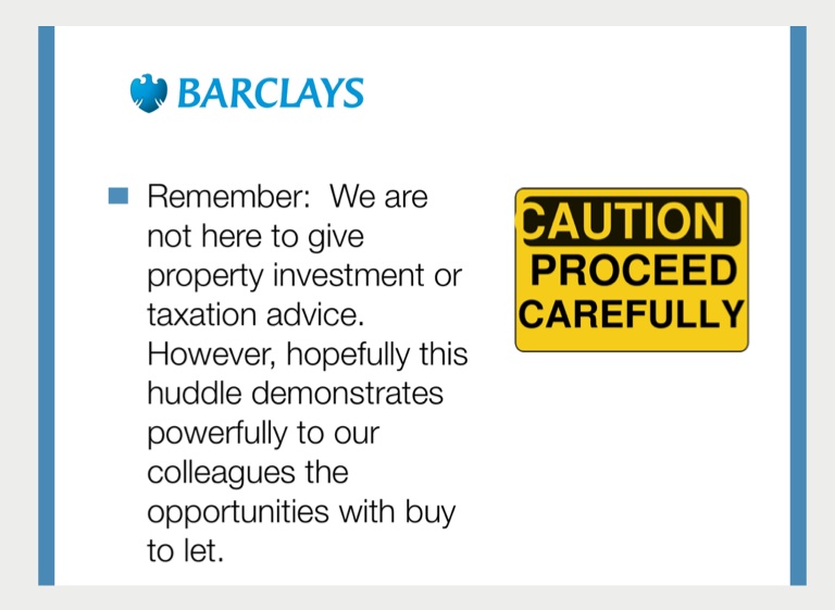 Remember: We are not here to give property investment or taxation advice. However, hopefully this huddle demonstrates powerfully to our colleagues the opportunities with buy to let.