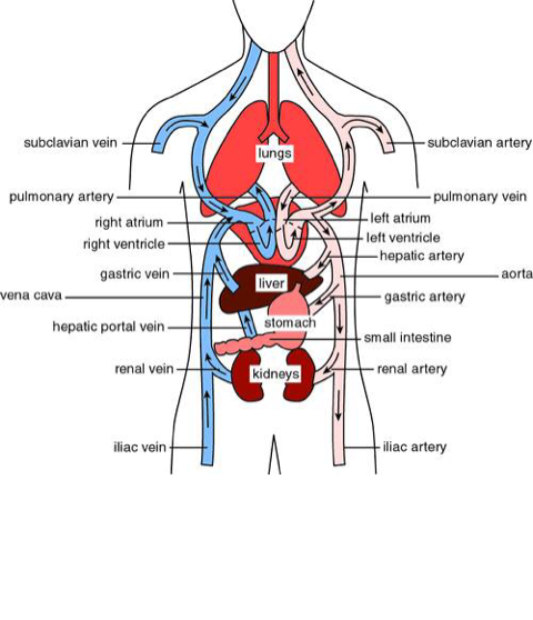 Heart- the heart sits near the center of the chest the constant pumping from the heart keeps the circulatory system working at all times.