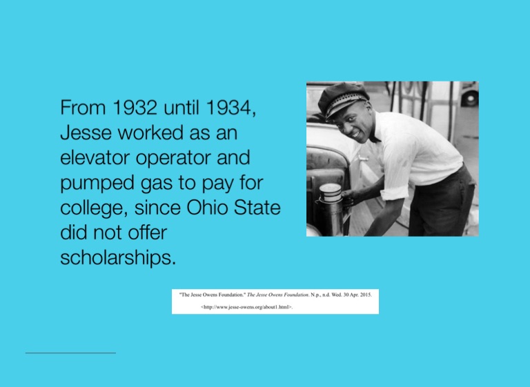 From 1932 until 1934, Jesse worked as an elevator operator and pumped gas to pay for college, since Ohio State did not offer scholarships.