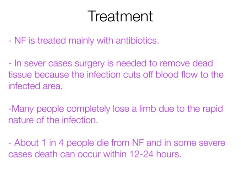 -Many people completely lose a limb due to the rapid nature of the infection.