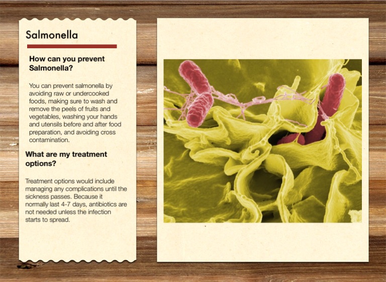 You can prevent salmonella by avoiding raw or undercooked foods, making sure to wash and remove the peels of fruits and vegetables, washing your hands and utensils before and after food preparation, and avoiding cross contamination.