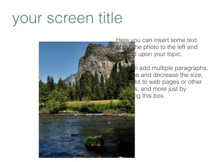 Here you can insert some text about the photo to the left and expand upon your topic.