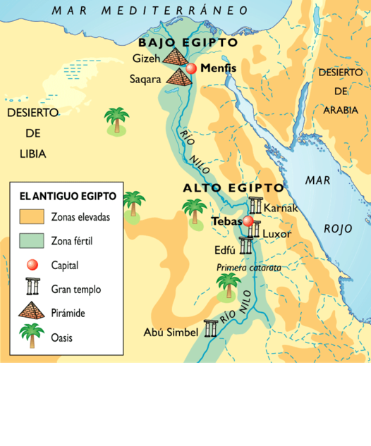 Estas gentes fueron prosperando considerablemente hasta llegar a organizarse en un Estado. Y el futuro Egipto faraónico quedaría dividido entre ALTO y BAJO EGIPTO.