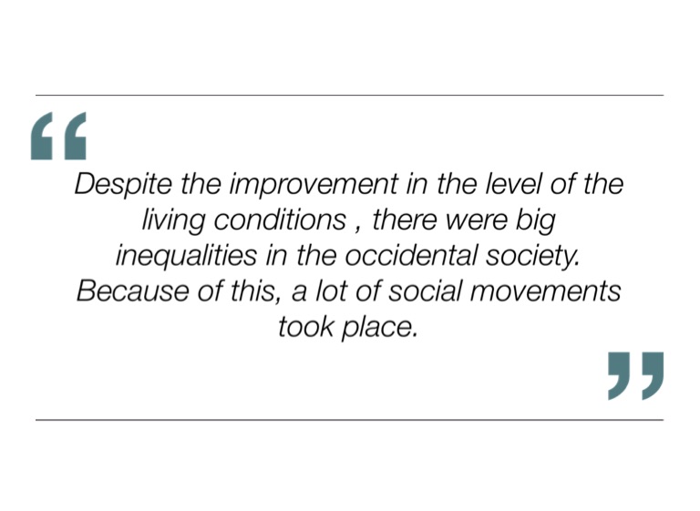 Despite the improvement in the level of the living conditions , there were big inequalities in the occidental society. Because of this, a lot of social movements took place.