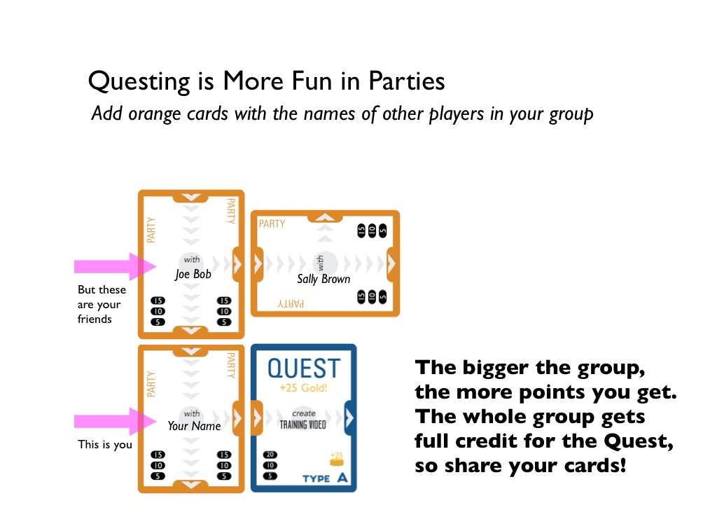 The bigger the group, the more points you get. The whole group gets full credit for the Quest, so share your cards!