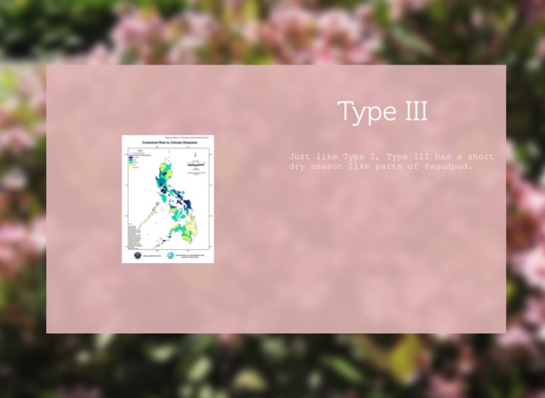 Just like Type I, Type III has a short dry season like parts of Pagudpud.