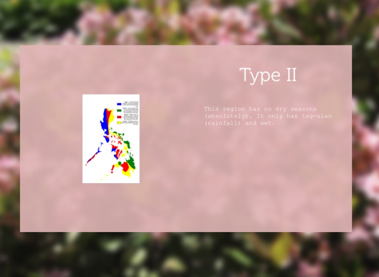 This region has no dry seasons (absolutely). It only has tag-ulan (rainfall) and wet.