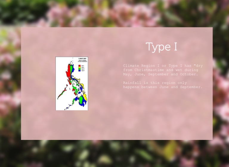 Climate Region I or Type I has "dry from Christmastime and wet during May, June, September and October.
